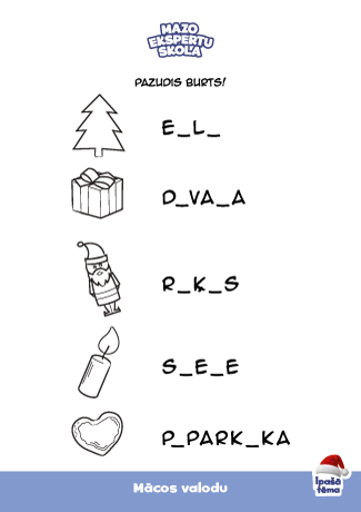 Задача ребёнка — сначала распознать символы Рождества, а затем вписать пропущенную букву или буквы в каждое имя. Затем раскрасить картинки!